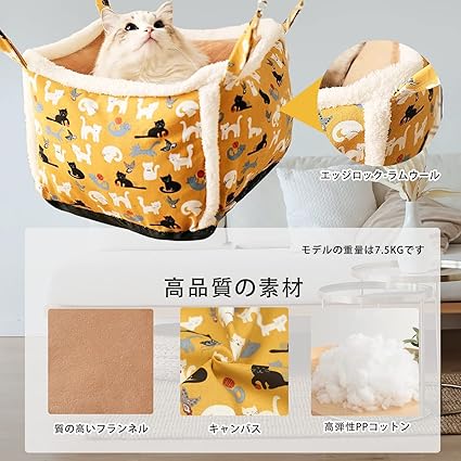 DOSEN HOFUL 猫 ネコ ハンモック はんもっくケージ用 大きめ ふわふわ メッシュ ねこ用 吊り下げ ペット 猫 はんもっく ケージ用 夏冬ケージ用 ハンモック 猫ランキング ねこはんもっく キャットハンモック 45×45×27cm (黄色い漫画の猫) | 猫王国 - 猫ちゃんとの思い出共有スペース