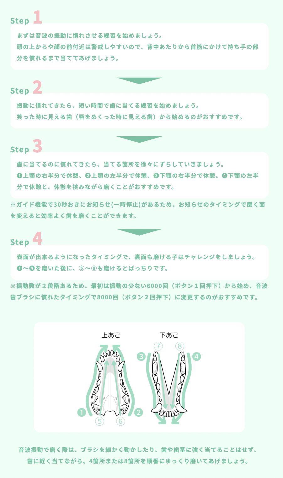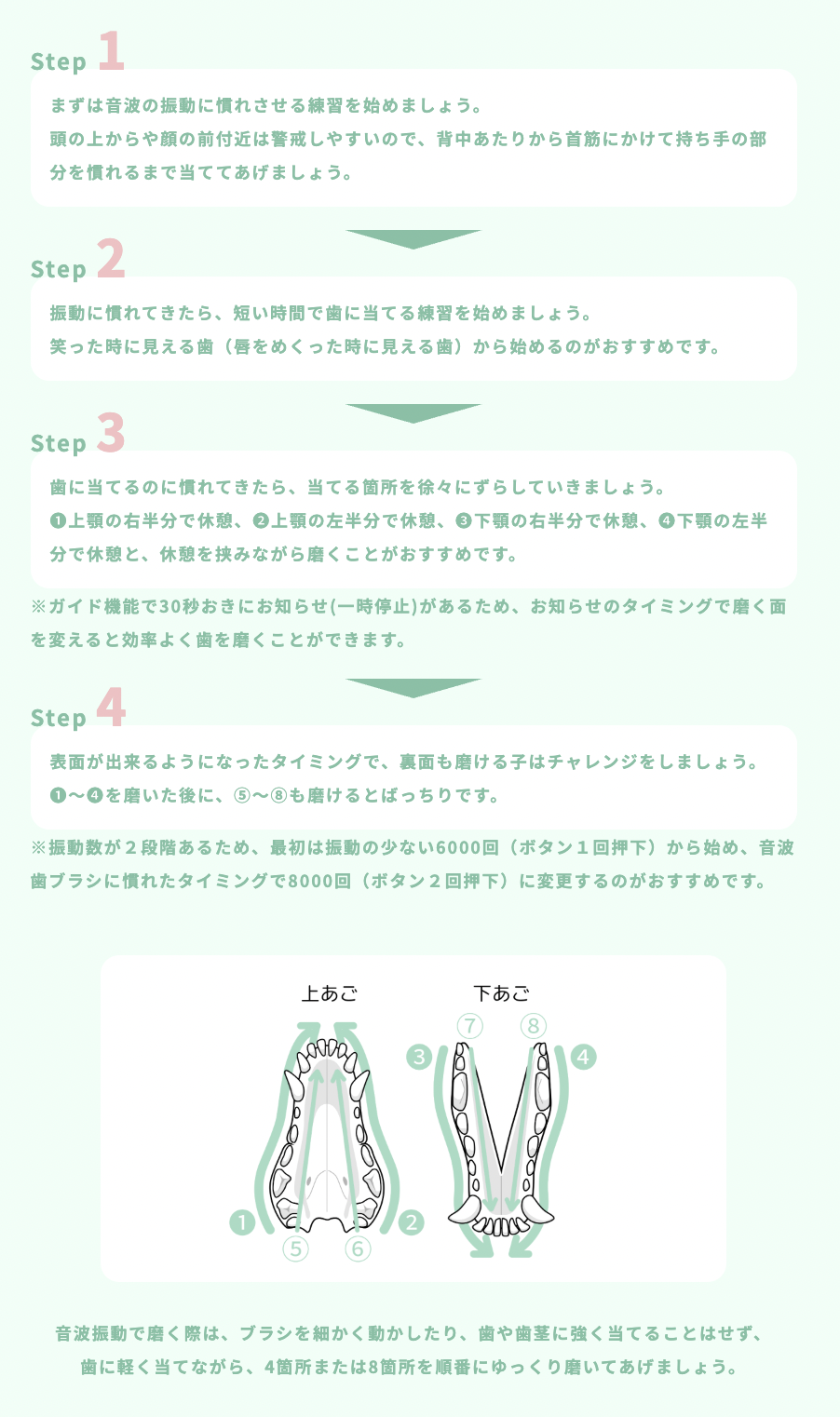 30秒ごとに一時停止するガイド機能で、磨く箇所の切り替えもスムーズ