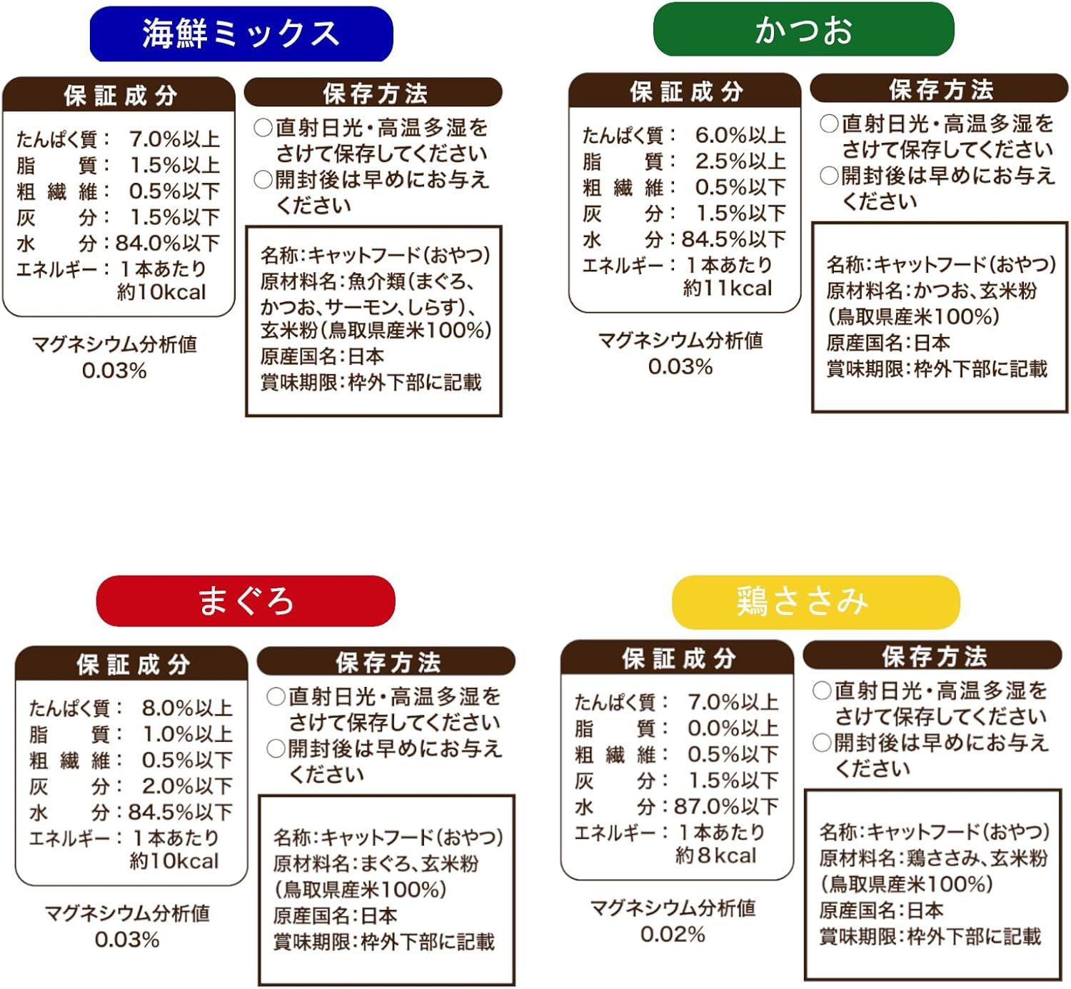 各味によって異なります。詳細は商品パッケージをご確認ください。