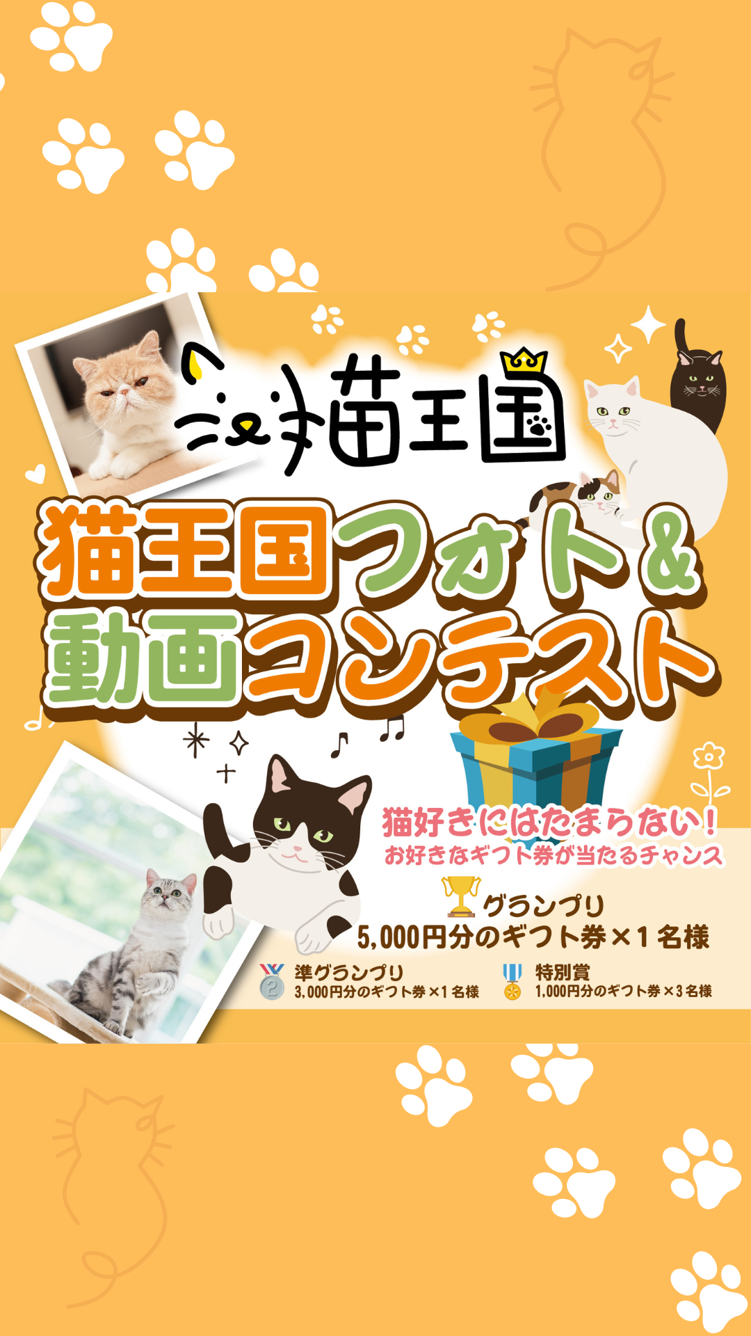 早いもので今年ももう6月😺2024年ももう少しで折り返し地点… と、いうことで久しぶりにこちらの企画を開催します! 上半期のベストショットを投稿しよう✨猫王国フォト&動画コンテスト開催📸🐾 皆さまの大切な猫ちゃんの魅力を存分に映し出した「上半期ベストショット」をぜひ、ご投稿ください😸✨ もちろん動画での投稿もOK😼📸 カワイイお写真、おもしろ動画、貫禄ある姿…なんでもOK💓 ぜひ皆さまのご自慢の猫ちゃんの「上半期ベストショット」を猫王国のWEBサイトにご投稿ください📱✨ 見事、各賞を受賞した猫ちゃんにはAmazonギフトカードをプレゼント✨